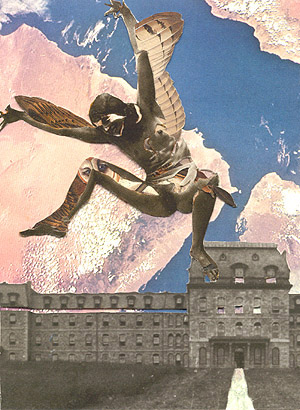 Passing through its massive portal into the chilly gloom of the dormitory's entrance hall, Babe pauses to savor the smoky, sex-stained atmosphere of her home. No one is immediately about, although to either side, among the first floor suites, sound systems throb in dissonant convulsions, and quick footsteps echo in the stairwell above. The central hall and staircase divide the building's two enormous wings; there is another set of stairs at the end of each long hallway, and Babe decides to ascend by the right wing stairs, having been accosted twice during the past ten days on the central stair by a fourth-floor Brazilian who claims to have been maddened by her charms. Babe pushes at the swinging door leading to the hallway on her right; meeting some resistance, she shoves; suddenly the door gives way and Babe, starting somewhat precipitately down the hall, nearly collides with a blowsy young first floor girl wearing a stained kimono, unsashed. Babe perceives that she has interrupted the girl's bestowal of lewd caresses upon a young man who plays some varsity sport at the local college. Under her dispassionate blue gaze the swelling at his crotch subsides like thawing frost. "Look what you've done, you filthy lesbian!," cries the disappointed girl with bosom-flushing petulance. Babe moves away with a shrug. She dislikes male interlopers but understands their importance to Damnation's economy, especially now that the drug trade is down, and she understands their place in its history as well. In return for their disproportionate contribution to Damnation's common stock of food and clothes, girls who enjoy lucrative pleasures with boys have always been suffered to remain on the lower floors by girls like Babe, who prefer to barter goods in kind for the favors of their peers; but in fact a very great deal is just given away in all the abandonment of the place.
