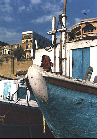 M NOT SITTING DOWN AT THE GHATS looking at the sunset on the Ganges River because I couldn't stand the thought of a) negotiating the transport there and back; b) the traffic during the transport. . .Could and would have overcome these (the better air and peace in the Cantonment area seem worth the distance and expenseyesterday it occurred to me to rent a cheap room down by the river just to have as a base for an overnight stay but then I ran into that "holy man" or whatever he was just as I was looking up the Scindia Ghat steps towards a recommended guest house and he started going on about the selfishness of Westernersreally not in an aggressive way going on but just mentioning it, as something he'd noticedat which I discarded the thought as if this were some kind of sign not to take up two hotel rooms in Varanasi merely because I can, for the sake of merely possible convenience. . .) and gone back for another afternoon ramble were it not for the increasingly certain (with the passage of every hour, it seems) prospect of being set upon by Holi revelers, doused with colored dyes (which I could handle) and assaultedas in groped, maybe slapped, certainly pushed and threatened and mockedwhich I could do without having to handle. Somehow I pictured Holi as being frenetic but gentle and fun. I don't know when my impressions started to changeit was gradual, as I became more aware of the male behaviors here, their patterns and clear potentialitiesbut by about two weeks ago I was dreading Holi and thinking it might be dangerous to be in Varanasi at this time; the communal violence here on Shivatri, reading about it in the Indore papers, gave me pauseas lot of pauseas I recall. . .Now that I'm actually here it just feels like a terrible inconvenience, one compounded by the fact that I couldn't get a day train out on Thursday and had to settle for Wednesday instead. . .so I'm losing two daysmore, reallyon top of a day lost to travel, while several million thousand boys ("of all ages" as Diane Eck truthfully, if disingenuously, in the most irritating Brattle Street of styles, puts it) run wild all over the cityall over the countryin a religious riot timed to coincide with the first full moon of spring. On the way back from the train station today a group jumped in front of and tried to stop the autorickshaw and the driver (not Papu) didn't stop, and they didn't move, and finally there was diving and brake-slamming and something awful occurred in the engine, but we escaped.