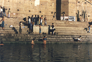 I'd been bothered, on Saturday, by an incident/observation similar to one V.S. Naipaul describes as occuring to him on the lake at Srinigar: child rowers ferrying seated souvenir salesmen about in their pursuit of tourists. . .In my case, the rower of the boat was too young (maybe 13, not young in India, really. . .). I'd told Papu that I wanted an adult rower, didn't want "a boy"he misunderstood (willfully?) and I ended up hiring a different boy even youngerbut more honestthan the boy who rowed the day before. At the end of the ride, I prepared to pay 80 Rsat 50Rs/hour, a little over what I ought to have been paying for the hour and a halfat which point the boy, inexplicably, asks for baksheesh; I say, I'm paying you, why do you need baksheesh?wondering, not being nasty or aggressive, just confused. . .at this moment up springs as if from the mud a little shouting man demanding that I give the boy baksheesh and him 100 RsI start to object and he rolls his eyes: "Why you always money money madam?" I say to Papu, Who is this man? It turns out he's the boy's. . .well, they said father, but this felt like something being said for my benefit; he was in any case the owner of the boat and the employer of the boy. At this man I shoutedI've shouted very little here, almost not at all (being very quiet, and still, is more effective by far in any case)but at this man's making a commotion I shouted back, something like, "Why should I pay you when the boy did all the work? What do you do anyway?"and I did in fact refuse to give him any money (Papu paid and I reimbursed himI just refused to play); so the little man scurried back up to his no-doubt padded perch overlooking the boat landing and we continued to make derisive, unhappy noises at one another until I went away.