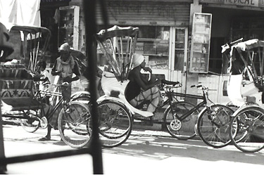 Got a close look at one of the post-Holi still-performing in tents "girls" today and it was maleI had peered hard at some of the singers I'd seen from a distance before now, sensing there might be a switch on (the suggestion of sexual underworld was heavy enough and there is this tradition, about which I am not well informed, of a caste of eunuch entertainers in India), but this time I was close (in the autorickshaw, but close) and there was enough eye-contactenough darshanmade for me to detect the mocking/challenging drag queen face-to-the-world ethosso very familiarin the gaze returning mine. . .After this began noticing the extraordinary amount of eye contact one makeseven from the back of an autorickshawwhile passing along a busy (or even not so busy) stretch of road in India: people are looking, looking; many people aren't moving at allthey're sitting cross-legged on their carts or just inside their shops, stuck there selling things; or they're lying on a string cot, propped up on one elbow, maybe sick, maybe dying, maybe just lazing; or they're in a rickshaw too, auto or bicycle, or in a tonga, or in the back of a jeep, or the back of an oxcart, being transported.